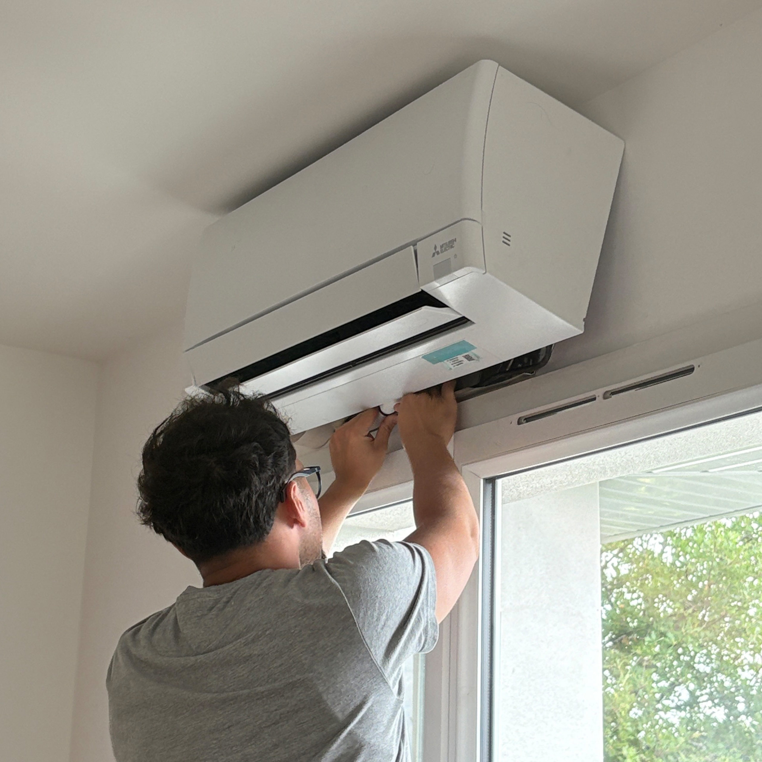 – Après les travaux de finition des murs intérieurs (peinture blanche), Selim et Thomas ont installé l’unité intérieure et l’ont raccordé à l’unité extérieure. Pour terminer, ils ont fait le vide, incorporé le gaz R32, procédé à la mise en service et réalisé tous les tests.